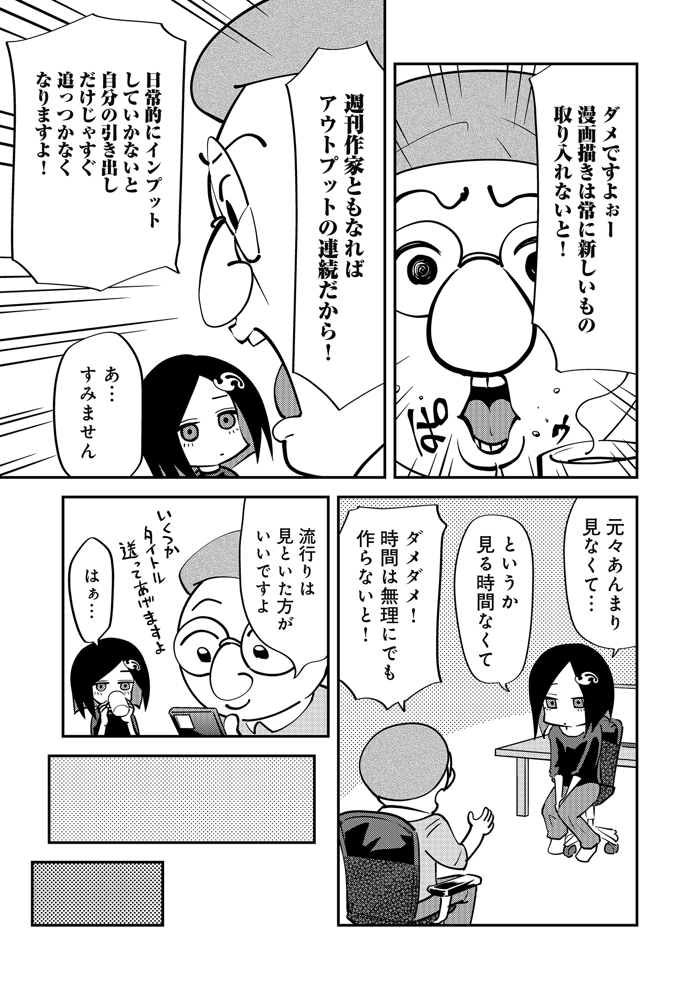 ホーム作品一覧ペンと漫画と修羅場場場 ペンと漫画と修羅場場場 山本あひる ギャグ・コメディ日常青年コミック あなたは目撃することになる。 漫画家達のリアルな日常―― もしくは嘘八百を。 個性豊かな漫画家達が織りなす、日常系(?)オムニバスギャグ漫画が今、開幕! 試し読み 配信サイト一覧 シェアする おすすめ作品 カエデの秘め事 yummy┴「設定さん。」ラランド ニシダ すずとゆず 2人でお出かけ 彩乃浦助 デッドバイ中学生 ジョージ太郎 俺んちの小哲 ふじ野はな 白雪王と野郎共Z よいこの前M メンクイ 松林頂/丸本青 コメットを待ちながら こうゆうこ じっと見つめる路留さん 春千秋 こんな汚物に触れるか!帰らせてもらう! 平乃ひら/遥海遥 ヒットマンズコーポレーションあやめる課 あそうぎ/武市ミツル