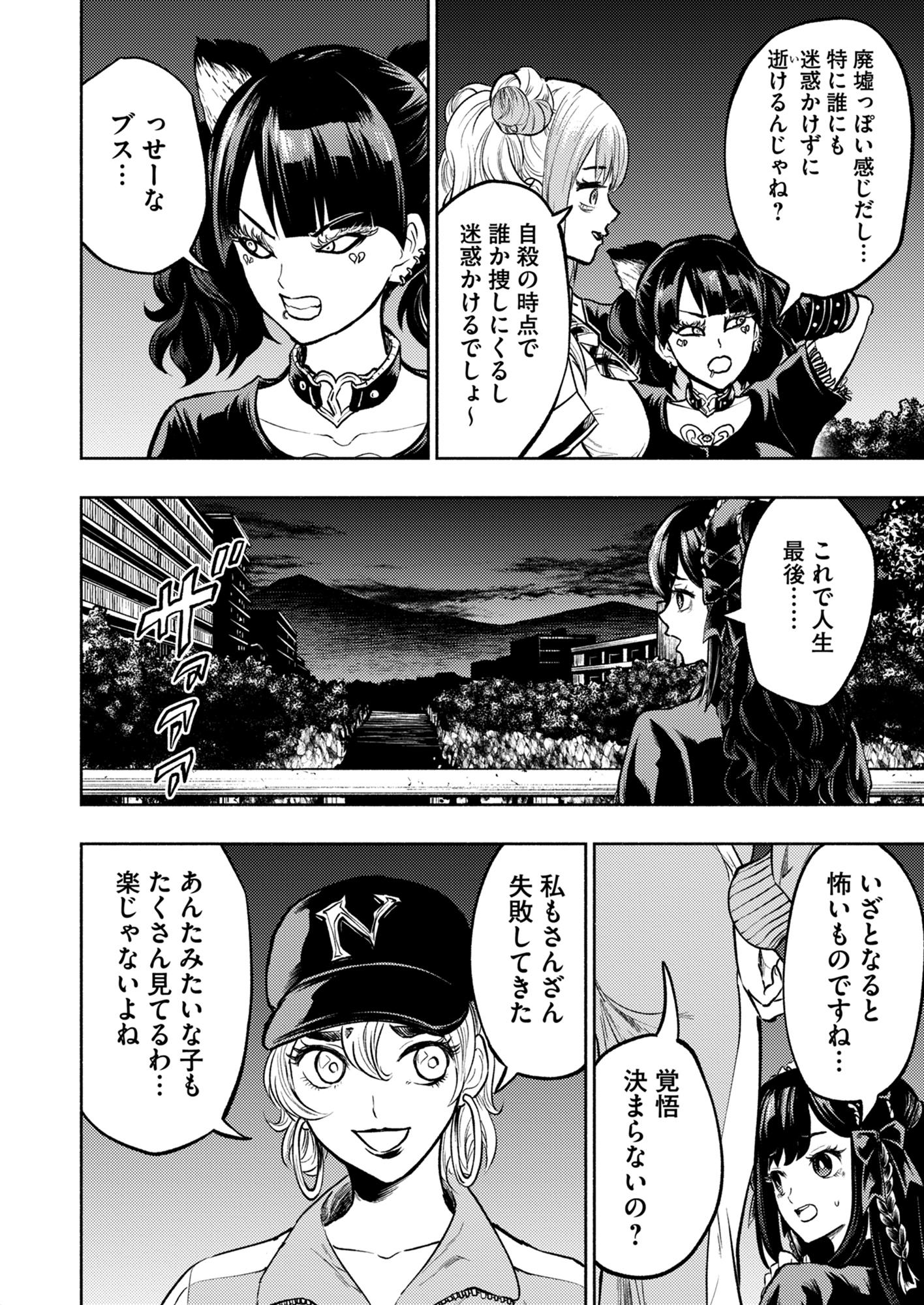 ホーム作品一覧病みギャルVS激怒ゾンビ軍団 病みギャルVS激怒ゾンビ軍団 弓咲ミサキックス バトル・アクションホラー青年コミック 「ムシャクシャする」――その呟きが、悲劇の始まる合図だった。 集団自殺のために鬼哭川廃墟群を訪れた、有紗ら6人の病みギャルたち。しかし彼女たちが人生最期の地として選んだそこは、生前の怒りを持て余す「激怒ゾンビ」が徘徊する地獄だった! 逃げ場なし! 助けなし! 容赦なし! 怯える暇さえ与えられない凄惨な殺戮劇の中、死にたかったはずのギャルたちは救いを求めて廃墟を駆け抜ける。予測不能のノンストップ・サバイバル・ホラー! 試し読み 配信サイト一覧 シェアする おすすめ作品 虫喰いの果実~wormy FRUIT~ 高嶺智貴 ADEL33 yummy(漫画)/高瀬敦也(原案) メンクイ 松林頂/丸本青 ホラー作家は愛し過ぎて眠れない(兄視点) 浅美裕子 王立魔術特捜RMs さとうねこ はじめてですわ~! 億美お嬢様は貧子ちゃんをベタ褒める かなしみ ヒットマンズコーポレーションあやめる課 あそうぎ/武市ミツル 漫画もののけ~傑作短編集~ SENGPIE・もののけ ヒーラーかと思ったら狂戦士だった件 莉瑪nis たちおとめ 円山晃